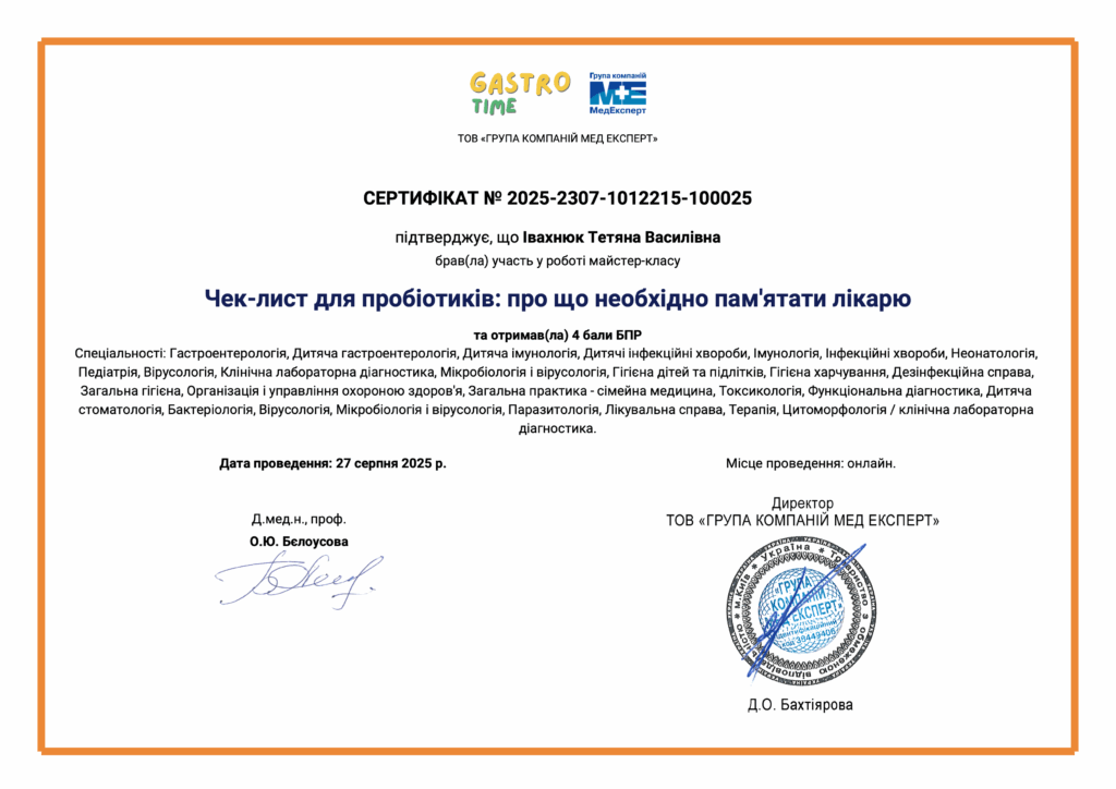 27 серпня відбувся майстер-клас Gastro Time: «Чек-лист для пробіотиків: про що необхідно памʼятати лікарю» участь у якому взяла доцент кафедри громадського здоров’я – Тетяна ІВАХНЮК.