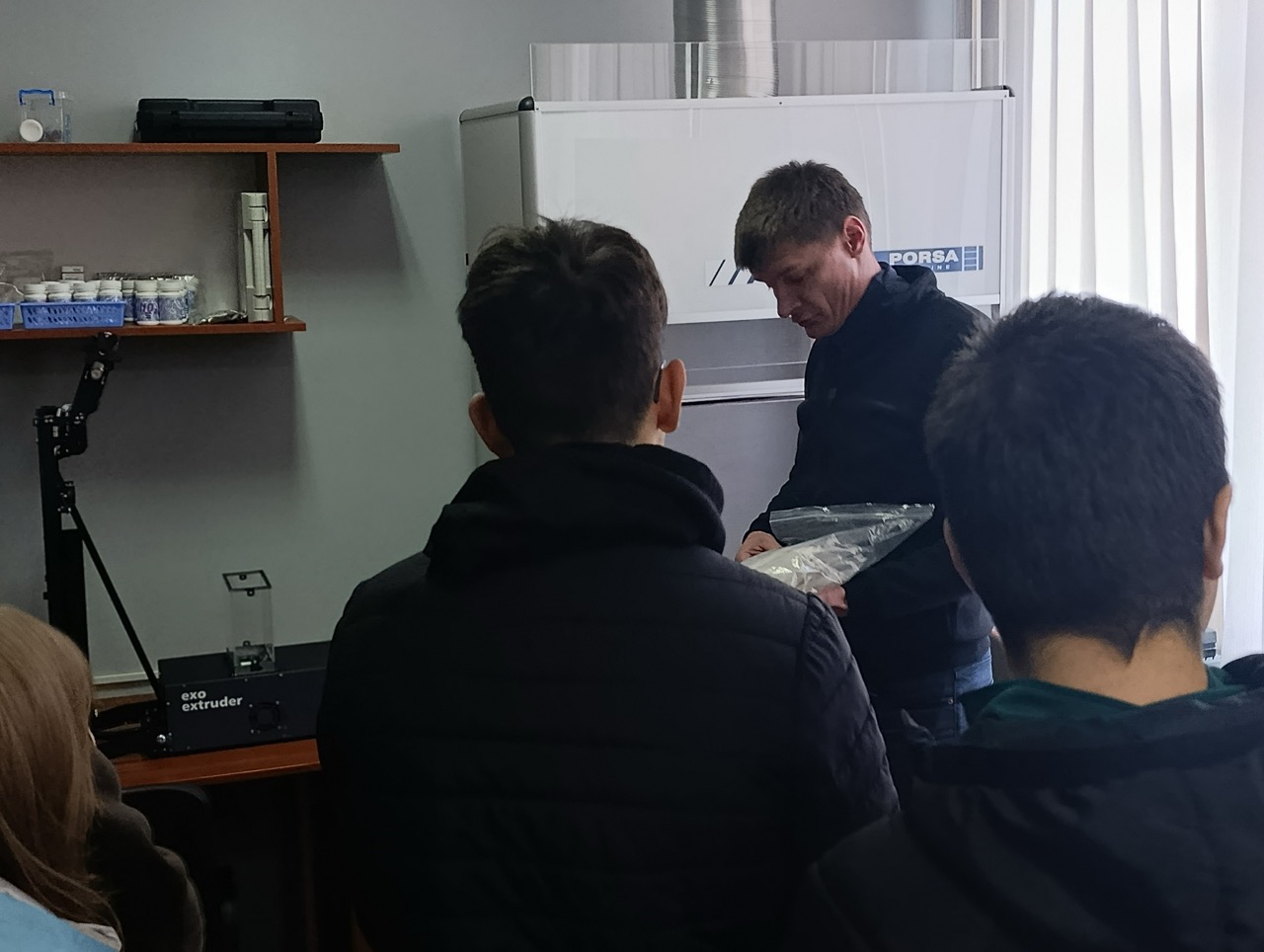Також відвідувачі побували у науково-дослідній лабораторії РЦ «ЕКОМЕДХІМ», де доцент Олешко О.М. ознайомив їх із можливостями 3D-друку в медицині, продемонстрував роботу 3D-принтера та приклади застосування інноваційних технологій у підготовці майбутніх фахівців. Такий формат співпраці сприяє професійному зростанню студентів, формує їхню наукову зацікавленість і відкриває можливості для подальшої освіти у Сумському державному університеті.
