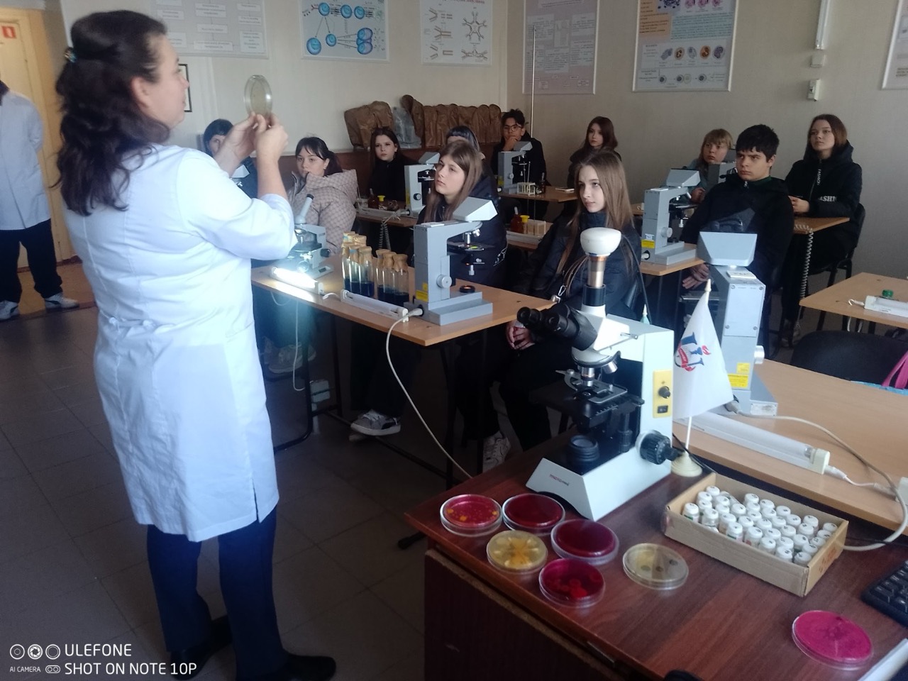 Під час візиту майбутні медики мали змогу ближче познайомитися з роботою кафедри, її навчальною та науковою інфраструктурою. Студенти занурилися у мікроскопічний світ мікроорганізмів, ознайомилися із сучасними методами мікробіологічної діагностики та відвідали науково-дослідну мікробіологічну лабораторію, де доцент Тетяна Івахнюк продемонструвала практичні аспекти дослідження мікроорганізмів.